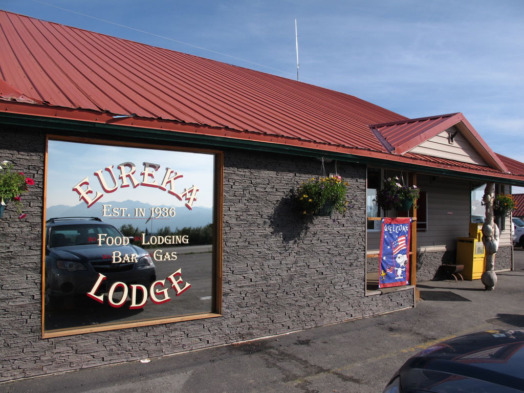 Eureka Lodge – One hour west of Glennallen towards Anchorage, you’ll pass Eureka at mile 128 on the Glenn Highway. This is a good place to stop and stretch your legs, get a snack, or sit down for lunch. Fondly known by Alaskans as “Home of the 25 Cent Coffee.” There are four-wheel, snowmachine, and hiking trails nearby, including the popular Gunsight Mountain hike.
